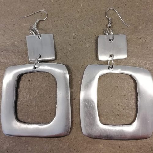 Orecchini con pendente elementi quadrati, realizzati in 100% alluminio riciclato con gancio ipoallergenico. Nickel tested.