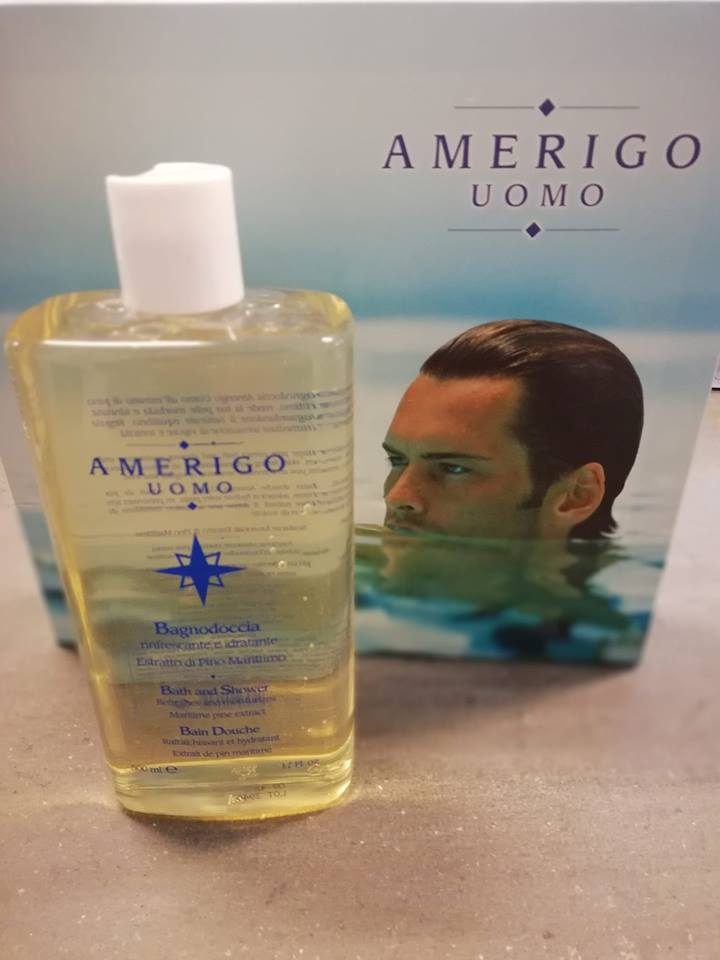 Cofanetto Amerigo per Lui. Il bagnodoccia (500 ml) all’estratto di Pino Marittimo, rende la pelle morbida e idratata, salvaguardandone il naturale equilibrio. Regala un’immediata sensazione di benessere, di vigore e tonalità. Il balsamo (100 ml) calmante e addolcente, grazie e Betaglucano, Picnogenolo e Bisabololo, regala una pelle idratata e protetta. Adatto a tutti i tipi di pelle, anche le più sensibili, aiuta a prevenire l’invecchiamento cutaneo. La crema mani e unghie (40 ml) è un efficace trattamento per la cura quotidiana delle mani. Studiato anche per le pelli più sensibili, rigenera e nutre a fondo.
