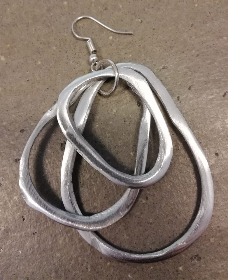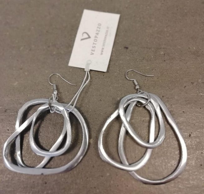 Orecchini con pendente elementi irregolari, leggerissimi, realizzati in 100% alluminio riciclato con gancio ipoallergenico.
