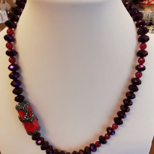 Girocollo con cristalli rosso viola, giada, corallo