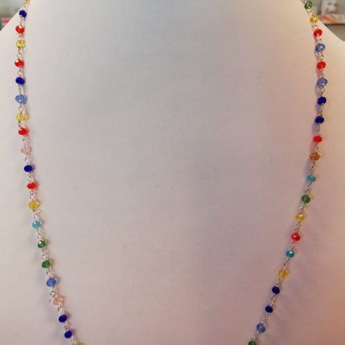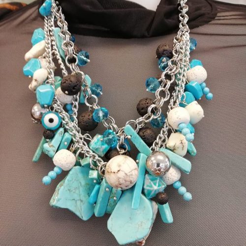 Girocollo multigiri con catena argentata e pietre dure di varia misura.