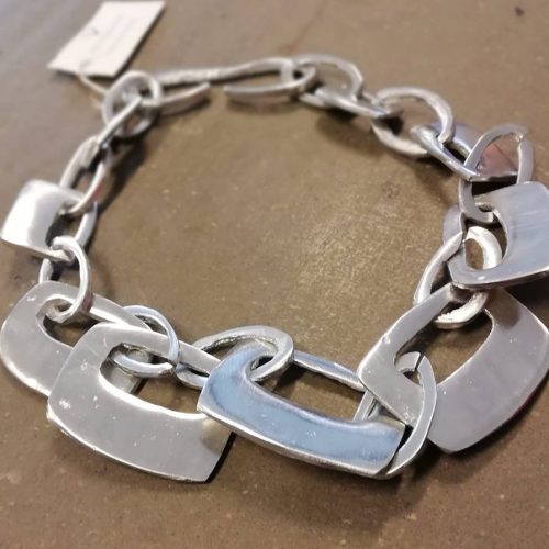 Collana girocollo con chiusura gancio ed elementi irregolari, realizzata in 100% alluminio riciclato. Nickel tested.
